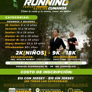 Tercera Edición – CUMANDA CUPOS LIMITADOS 25-ENERO-2026 – Cumandá Distancias 2K – $10.00 SIN JERSEY Y $15.00 CON JERSEY 9K –$10.00 SIN JERSEY Y $15.00 CON JERSEY 18K –$10.00 SIN JERSEY Y $15.00 CON JERSEY Salida: Cancha Techada Barrio La Dolorosa Categorías Junior: 9 a 12 años solo 2k 20 cupos disponibles DISTANCIAS DE 9KM VARONES […] ...
